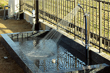 ペットシャワー・ドッグステイ(リードフック)・ガレージルームなど、愛犬家にもワンちゃんにも嬉しい様々な工夫をアーステックの展示場で体験してください。