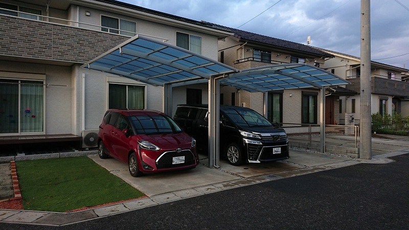 玄関前という事を考慮して、背の高い(H25)カーポートにしました。